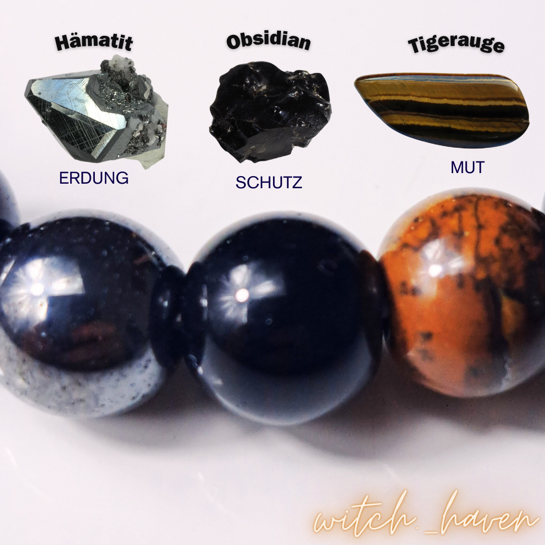 - Material: Echtes Tigerauge, Schwarzer Obsidian und Hämatit (Natursteine)