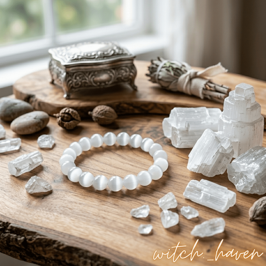 Von mir handgefertigt: Magisches Selenit Armband für Ausrichtung