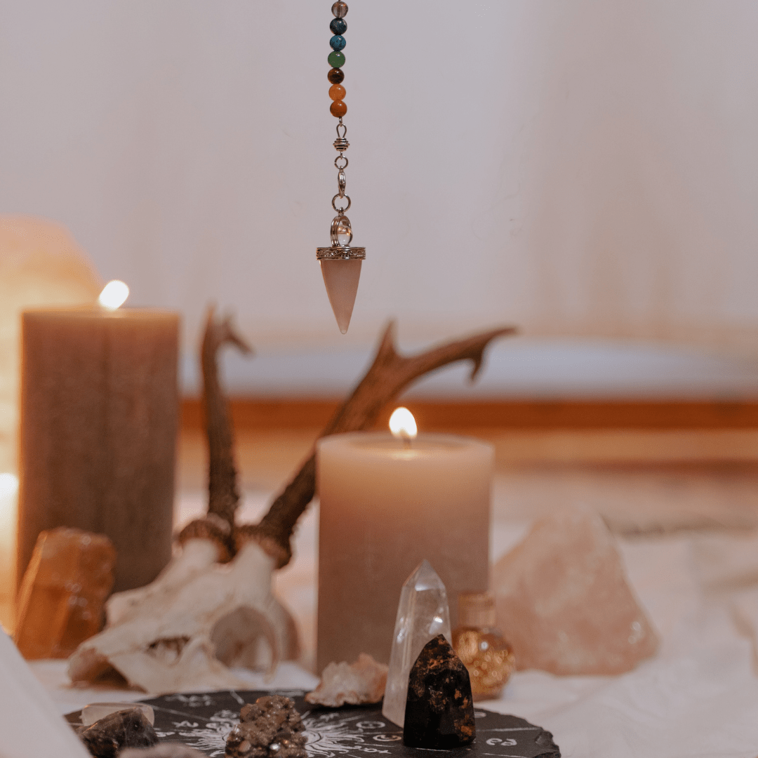 - Spirituelle Begleiter: Pendel, kleine Statuen oder andere Schätze der Esoterik.