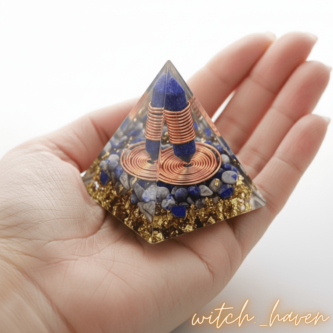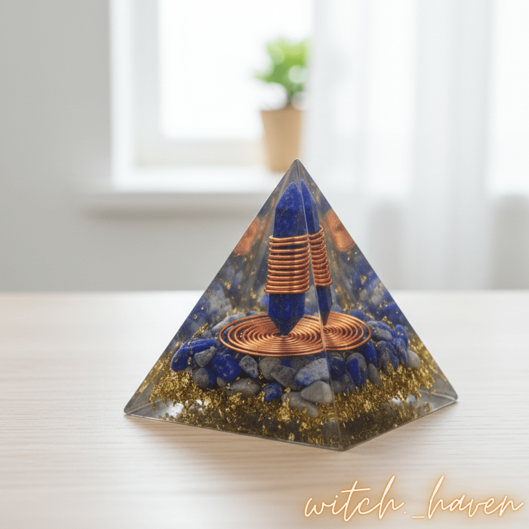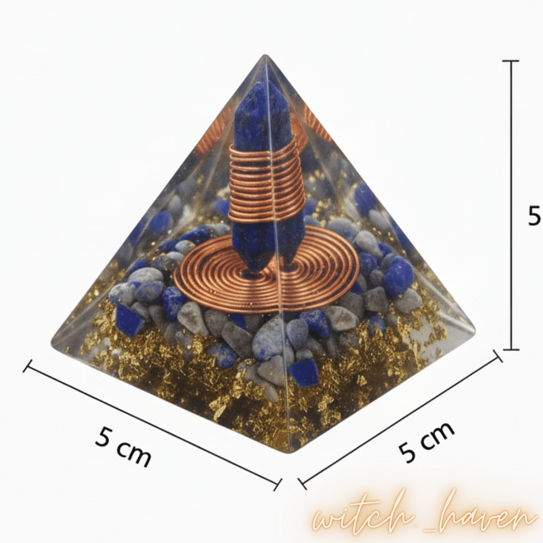 Aktiviere deine innere Weisheit mit dieser faszinierenden Orgon Pyramide einem kraftvollen Energieobjekt aus edlem Lapislazuli und leitfähigem Kupfer. Im Zentrum dieser handgefertigten Pyramide schwebt eine Lapislazuli Kristallspitze umschlossen von einer Kupferdrahtspule während die Basis mit Lapislazuli Chips und schimmernden Goldflocken gefüllt ist um negative Schwingungen zu neutralisieren. Als Stein der Könige unterstützt der Lapislazuli dein Stirn Chakra und fördert Intuition sowie klaren Geist während die Pyramidenform die Lebensenergie in deinen Räumen harmonisiert. Vor dem Versand reinige ich deinen Hüter der Weisheit persönlich rituell mit weißem Salbei damit dieses exklusive Ritualobjekt dich in seiner reinsten Schwingung erreicht und ein geschütztes Feld für deine spirituelle Praxis schafft.