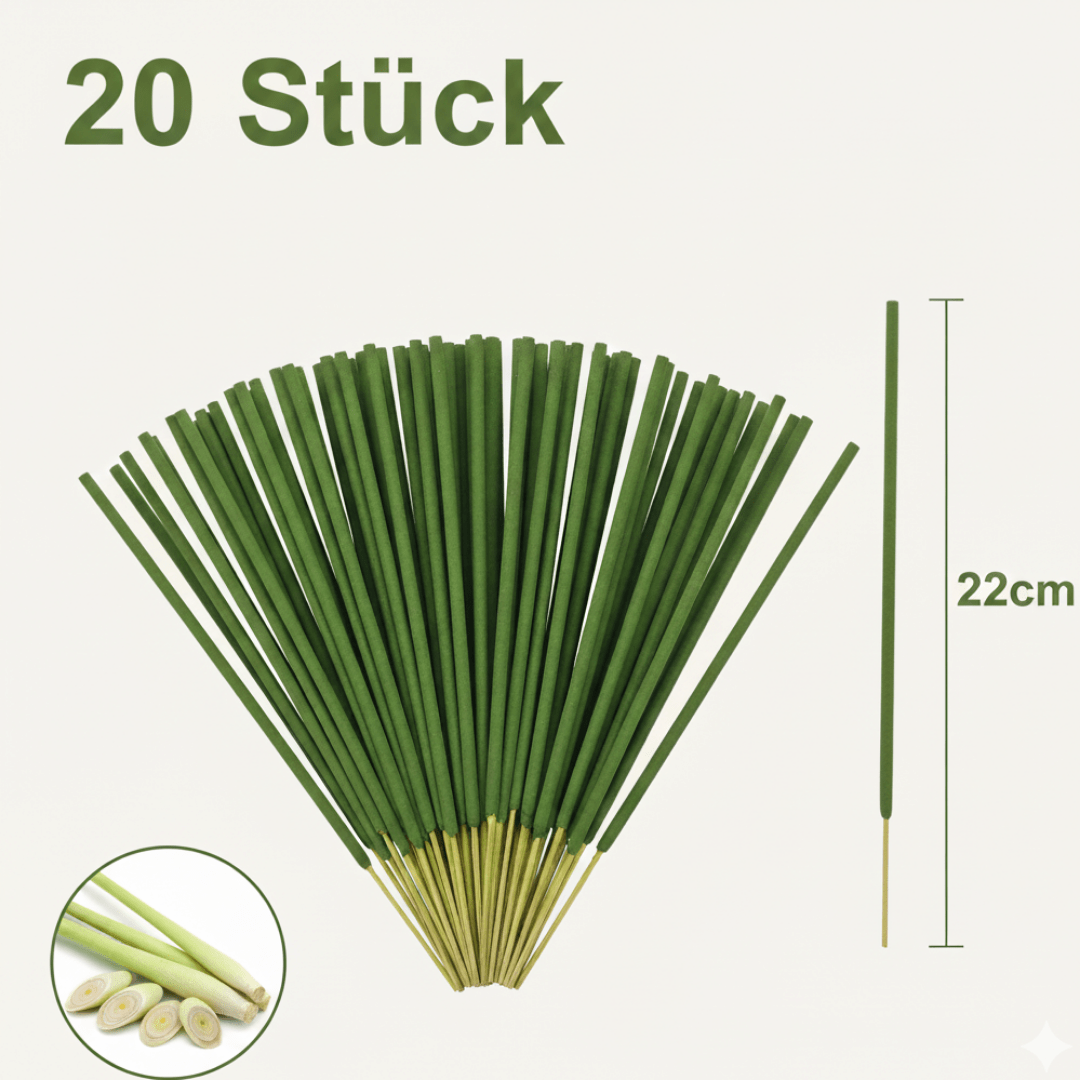 - Inhalt: Bündel mit 20 Zitronengras Räucherstäbchen