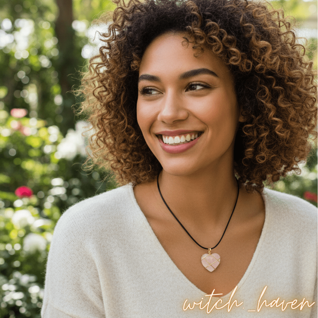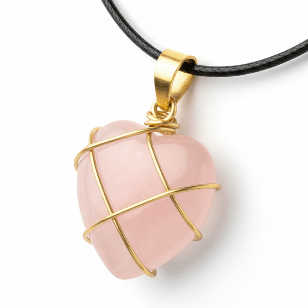 Sanfte Herzensliebe – Dein Rosenquarz Anhänger mit goldenem Draht
