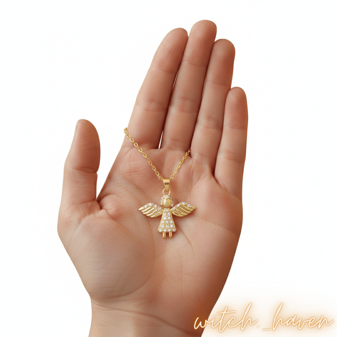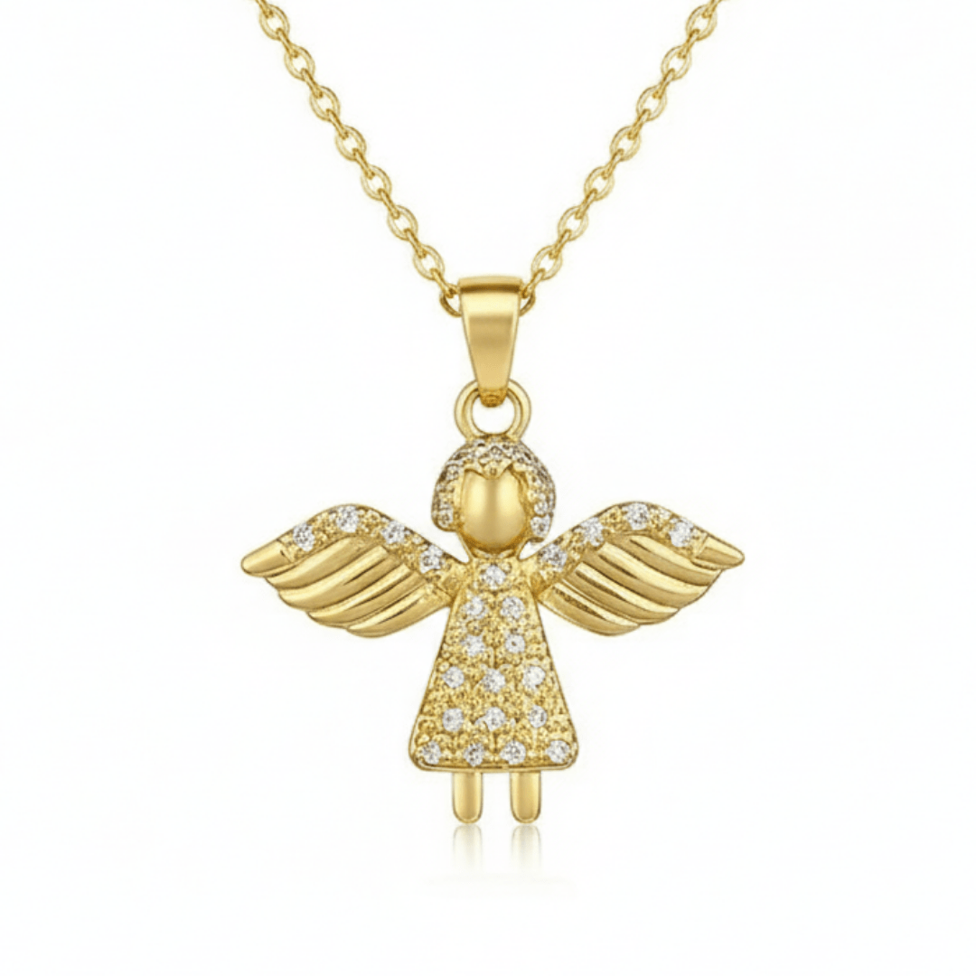 Himmlischer Glanz – Elegante 18K Vergoldete Engel Halskette aus Edelstahl