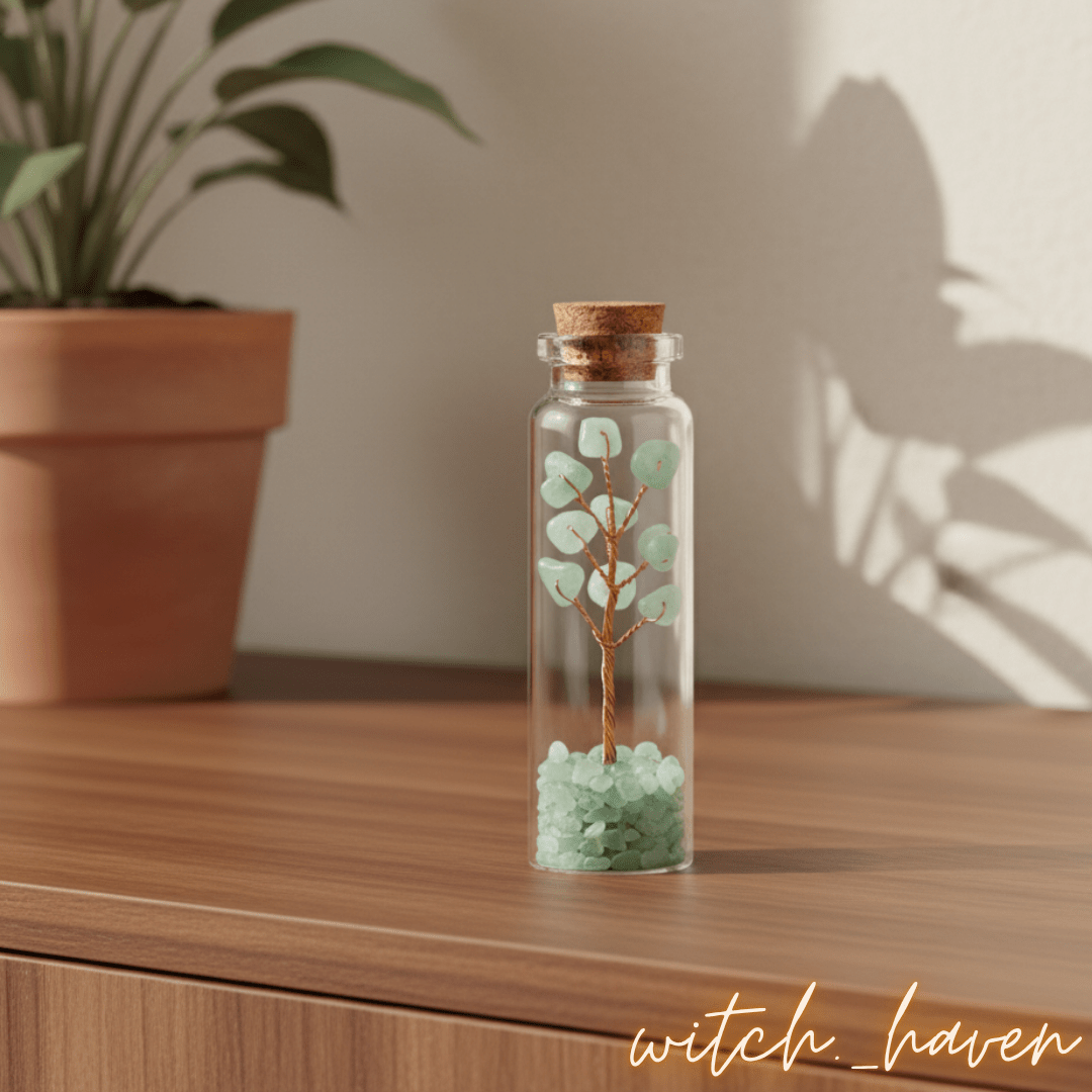 Kristall-Wunschflasche mit Aventurinbaum – Reichtum & Wohlstand